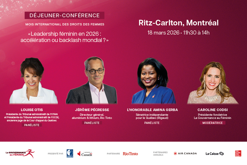 Les nombreux événements que nous organisons depuis 2010 visent à favoriser le réseautage entre femmes performantes et ambitieuses (ainsi qu’avec les nombreux hommes qui y participent !), à leur offrir un accès privilégié à des leaders d’opinion et à des conférencier·ère·s inspirant·e·s de renommée mondiale, ainsi qu’à contribuer à leur développement et à leur formation en matière de gouvernance, de leadership, et d’autres sujets pertinents pour soutenir leur avancement professionnel.